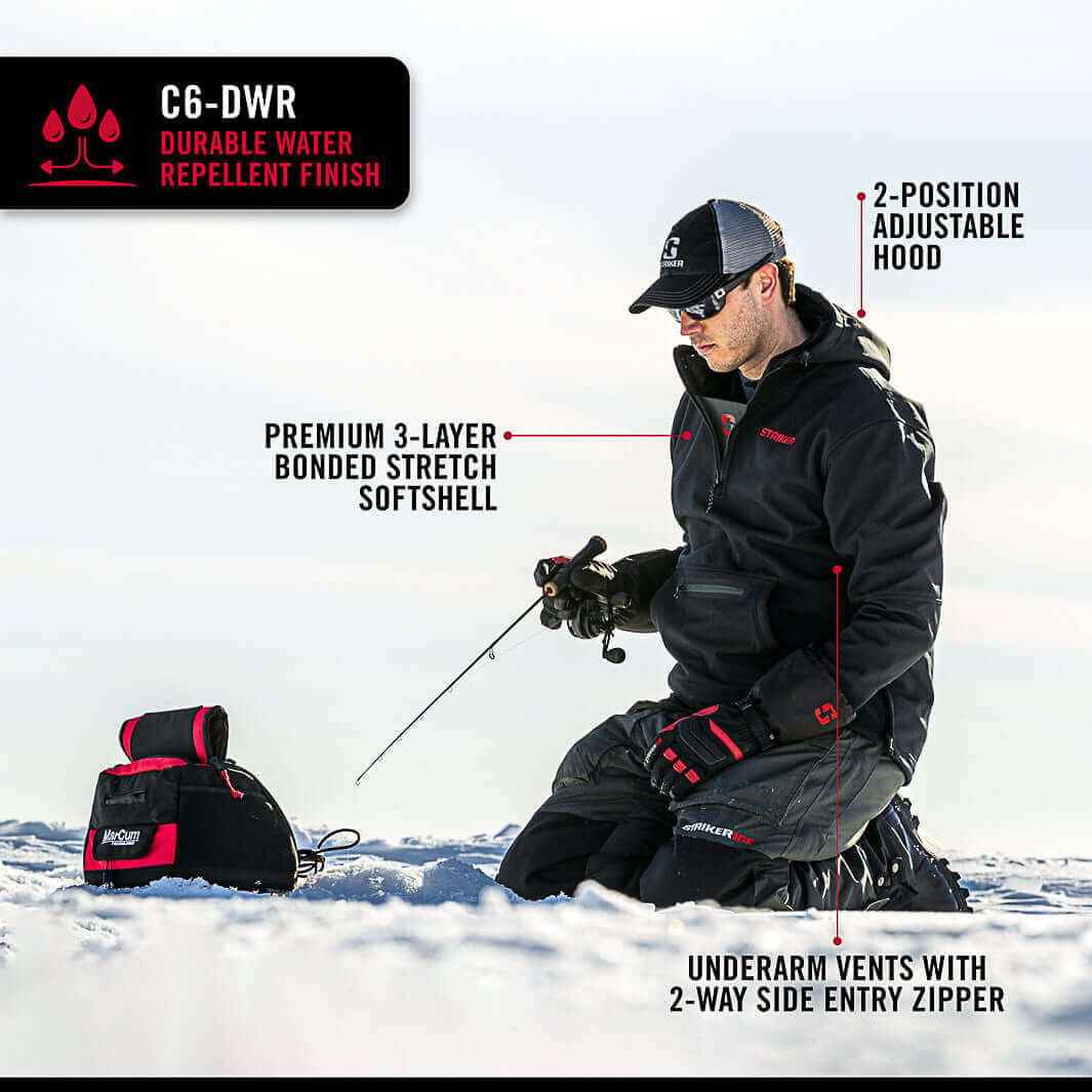 Torture tested in the North, the Striker® Renegade Pullover is as versatile as they come. From active days spent ice fishing to windy and cold days in the boat, there truly is no season the Renegade will not handle. Constructed of a durable windproof, breathable, and extremely water-resistant 3-layer softshell, it is as tough as 6AM ice. A fleece lined handwarmer pocket and front zippered stash pocket keep your hands warm and your essentials close. Zippered side vents help regulate temperature and adjustable hood and hem lock out the chill so you can enjoy the thrill.