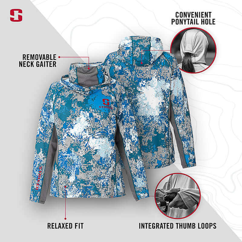 Summer months on the water are precious as the seasons seem to change faster with each passing year. Enjoy warm weather months and take care of yourself while on the water with the Women’s Guardian Hoody. Performance features like UPF 50+ sun protection, odor resistance, and moisture management qualities packed into this lightweight fishing shirt give you a soft and comfortable next-to-skin piece that you will want to wear all day long. The 3-panel hood with ponytail hole, removable neck gaiter, and integrated thumb loops provide additional protection around your head, face, and hands. Designed for the serious female angler, you can trust that the Guardian Hoody will keep you fishing all day long.